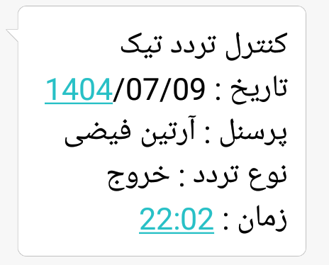 اگر در شرکت خود دستگاه حضور و غیاب دارید، و علاقمند هستید که از ورود و خروج پرسنل خود از طریق پیامک مطلع شوید، نرم افزار کنترل تردد تیک این کار را برای شما انجام می دهد.